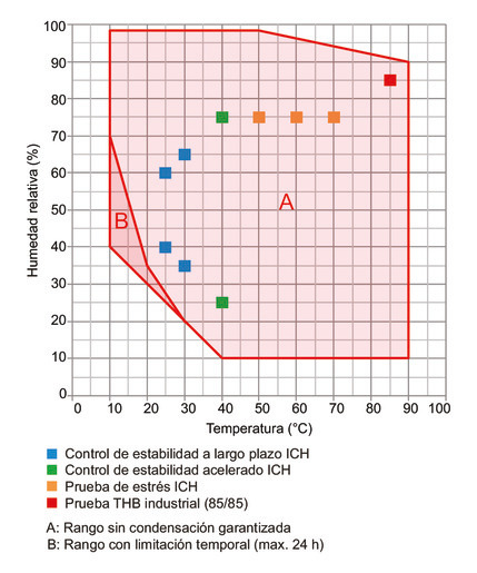 Rango de temperatura con humedad: 0 °C a 70 °C.