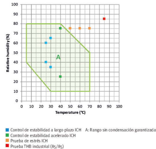 Rango de temperatura con humedad: 10 °C a 70 °C.