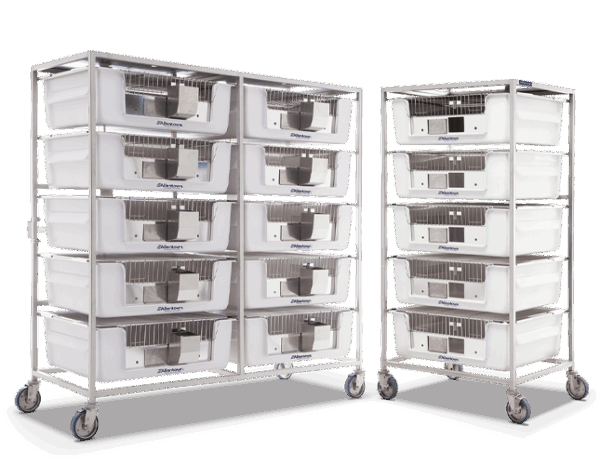 • Jaulas transparentes para observación continua.